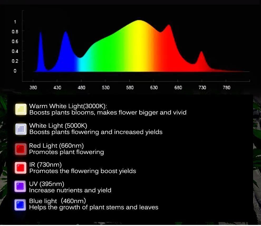 3500 К + 5000 К + 660 Нм + 730 Нм + 395 Нм + 450 Нм
