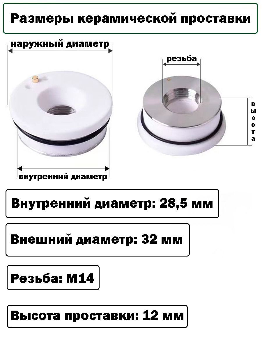 Керамическая проставка на лазерный станок 32 мм/28.5 мм - это необходимый комплектующий для работы с ЧПУ-станками, который обеспечивает точность и надежность процесса резки металлов. Проставка изготовлена из высококачественной керамики, что делает ее устойчивой к высоким температурам и механическим воздействиям.
