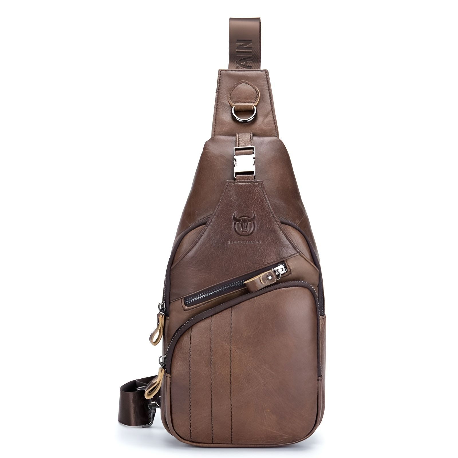Нагрудная сумка из натуральной кожи винтажного цвета подарит вам ощущение эстетики и моды.