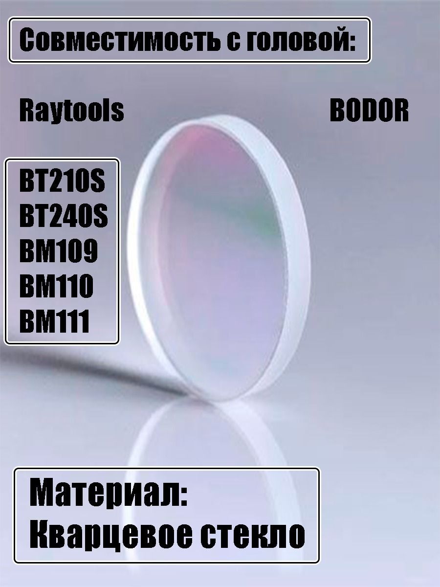 Применяется в лазерных станках и головках Raytools® (BT210S, BT240S, BМ109, BМ111), Bodor® для защиты внутренних частей оптической головки лазерного станка резки и сварки металла с волоконным и твердотельным лазером. Также подходит для головок других производителей, где используется данный типоразмер.